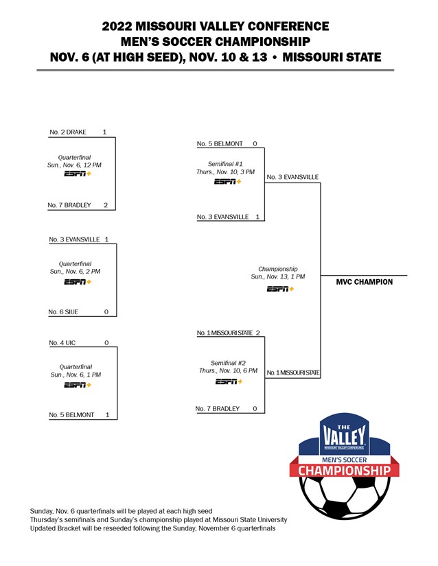 - ↑ "Bracket Set for 2022 MVC Men's Soccer Championship". mvc-sports.com. Missouri Valley Conference. November 2, 2022. Retrieved July 14, 2023.