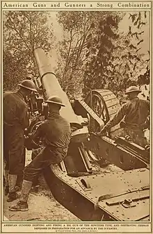 The 58th Regiment Coast Artillery Corps (C.A.C.) was in action in France in the final days of World War I with the US-manufactured Mk 6, and the 44th, 51st, and 59th Regiments were in action with British-manufactured versions. An additional six regiments, three with each type of gun, are described as being nearly ready for the front at the time of the Armistice.[11] Each regiment had an authorised strength of 24 guns.