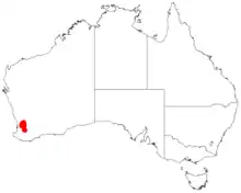 It is native to an area in the Wheatbelt region of Western Australia from York in the north to Williams in the south where it is found on hills, among granite outcrops and along stony watercourses growing in sandy-clay-loamy soils.[1]