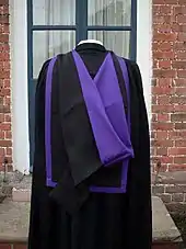 - Master of Philosophy - a full lining of purple trimmed with a broad band of gold ribbon within the cowl and a maroon edging on the cape