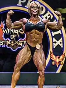 Aleesha Young (born November 10, 1984) is an American bodybuilder who won the NPC USA Championships in 2014. At her largest, her biceps measured over 18 in (457 mm) and her quads over 28 in (711 mm).[4]