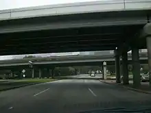 Due to its proximity to the flood-prone Buffalo Bayou, the underpasses are subject to flooding during heavy rains and flood gauges can be seen. In June 2001, though, heavy rains from Tropical Storm Allison caused Buffalo Bayou to overtop its banks and flood the entire parkway, in some places, to a depth of eight feet.[8] Even the KHOU television studios, at a slightly higher elevation than Allen Parkway, were flooded.[9] Most of Allen Parkway is more than 30 feet (9 m) above the normal level of Buffalo Bayou.[10] However, the level of the bayou during the storm was more than 30 feet (9.1 m) above normal.[11]