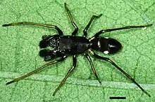 - 1 2 Cushing, Paula E. (1997). "Myrmecomorphy and Myrmecophily in Spiders: A Review". The Florida Entomologist. 80 (2): 165–193. doi:10.2307/3495552. JSTOR 3495552.