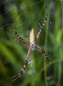 7. Walter, A. (2019). "Silk decorations in Argiope spiders: Consolidation of pattern variation and specific signal function". Journal of Arachnology. 47 (2): 271–275. doi:10.1636/JoA-S-18-013. S2CID 202579185.