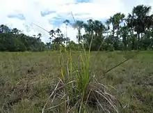 Aripo savannah is a tropical savanna ecosystem in the northeast of Trinidad. It is a rare example of savannas formed due to edaphic factors, i.e. the growth of trees is restricted not by climate but by a shallow layer of clay. This impervious hardpan clay layer restricts the growth of roots and magnifies both seasonal flooding and seasonal drought. These factors combined with regular exposure to the uninterrupted tropical sun make the savannas a hostile environment for most plants and animals.[1]