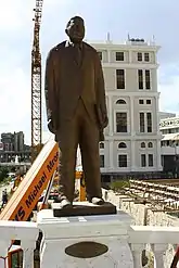 The Art Bridge (Macedonian: Мост на уметноста, romanized: Most na umetnosta, pronounced [mɔst na uˈmɛtnɔsta]) is a pedestrian bridge across the Vardar River in the centre of Skopje, the capital city of North Macedonia. The bridge features many statues of noted Macedonian artists and musicians. It was built as part of the larger Skopje 2014 project, with an estimated construction cost of €2.5 million. The bridge includes 29 sculptures, with 14 at each side and one in the centre. It is 83 metres (272 ft) in length and 9.2 metres (30 ft) in width, while the central part of the bridge is 12 metres (39 ft) wide.[1]