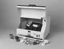 Ball mills are used for grinding materials such as mining ores, coal, pigments, and feldspar for pottery. Grinding can be carried out wet or dry, but the former is performed at low speed. Ball mills are used often in scientific work to reduce the particle size, eliminate agglomeration, change the shape of particles, provide for mechanical alloying, mixing, producing powders and changing materials properties.[2] An open source ball mill has been designed that can be fabricated with a 3D printer for a few hundred dollars.[3] It is able to be operated both on grid for lab work and off grid with solar photovoltaics and a battery for field work.[3] Blending of explosives is an example of an application for rubber balls.[4] For systems with multiple components, ball milling has been shown to be effective in increasing solid-state chemical reactivity.[5] Additionally, ball milling has been shown effective for production of amorphous materials.[5] It may also be useful to separate gases such as hydrogen and store them in powder form.[6][7]