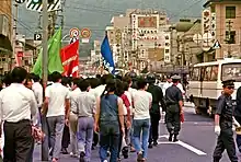 Beheiren was organized with the assistance of the "Science of Thought" research group led by Shunsuke Tsurumi, which sought to create a new type of autonomous Japanese "citizen" (shimin) capable of "spontaneously" organizing to form "grassroots" protest movements without guidance from hierarchical "Old Left" political parties and organizations.[6] As a supposedly "nonideological" organization that "anyone can join," Beheiren grew out of, and was modeled after, the similar "Voiceless Voices Society" (Koe Naki Koe no Kai) that Tsurumi and the Science of Thought group had organized to take part in the 1960 Anpo protests against renewal of the U.S.-Japan Security Treaty.[7] However, historian Simon Avenell has argued that the concept of the autonomous, self-organizing "shimin" was a "myth" that sometimes proved useful for organizing protest movements but rarely if ever reflected the actual structure and organization of such movements.[6]