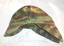 The Bigeard is a cloth field cap with a short cloth peak. Originally produced in lizard,[3][4] it was later produced in olive green and various camouflage patterns to include,[5] forest,[6] and desert.[6] The cap is more of a peaked sidecap and is available with or without neck flaps for sun protection.[6]