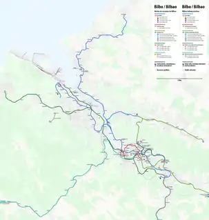| Operator(s) | Metro Bilbao, Euskotren (Euskotren Trena and Euskotren Tranbia) and Renfe (Renfe Cercanías and Renfe Feve) | ||