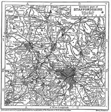 In published literature, the first reference dates from 1846 and occurs in the novel Colton Green: A Tale of the Black Country[19] by the Reverend William Gresley, who was then a prebendary of Lichfield Cathedral.[20] Gresley's opening paragraph starts "On the border of the agricultural part of Staffordshire, just before you enter the dismal region of mines and forges, commonly called the 'Black Country', stands the pretty village of Oakthorpe",[21] "commonly" implying that the term was already in use.[22] He also writes that "the whole country is blackened with smoke by day, and glowing with fires by night",[23] and that "the 'Black Country' ... is about twenty miles in length and five in bredth reaching from north to south".[24]