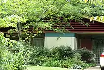 Following the war, McCarty worked as a draftsman at the Knoxville architectural firm, Barber & McMurry.[2][5] He earned a BA from Princeton upon returning from the war in 1946. From 1947 to 1949, McCarty attended the University of Michigan and earned a Bachelor of Architecture Degree. During this period, he became enamoured with Modern architecture, especially the work of Frank Lloyd Wright. He, Elizabeth, and son Hayes spent several weeks during 1948 driving around Michigan and Wisconsin, seeking out houses designed by Wright.[2][6] He also attended Wright's lectures, and visited Wright's home, Taliesin.[2] His other influences included Edward Durrell Stone, I.M. Pei, and Louis Kahn.[2]