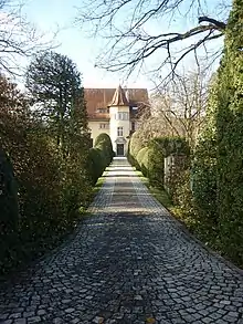 In 1907, Jung found the property that suited his preferences next to Lake Zürich in Küsnacht.[7] In 1908, he bought the land, and commissioned the construction of a large three-story house to his cousin Ernst Robert Fiechter and to garden architects Walter and Oskar Mertens.[8] Jung played a decisive role in the planning and design of the house and garden.[7]