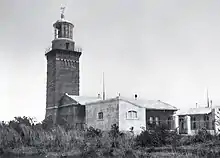 The original lighthouse was replaced by the Philippine Coast Guard with a new solar-powered tower located next to the previous tower under its Maritime Safety Improvement Project.[4] After the replacement, the lighthouse was abandoned and left open for thieves and vandals. The expensive first-order lens were vandalized with the large front Fresnel lenses all gone.[5] The original bronze marker were stolen by thieves and is now replaced by the locals with a white board with the original inscriptions.[6] The roof of the keeper's house and utility rooms have since collapsed.[7][8] The lighthouse is closed to visitors due to its dilapidated state.[9]