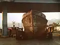 To haul the vessel onto land for transport, Wallace paid for the removal of debris that had illegally been dumped on the shore as well as sand and gravel to facilitate the lifting operation.