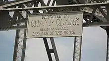 The bridge was named after James Beauchamp Clark, a former Speaker of the House from Bowling Green, Missouri. Clark served as Speaker from 1911 to 1919.