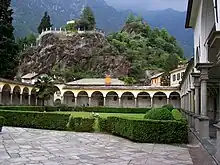 Chiavenna is crowned by a ruined castle, once an important strategic point, and the seat of the counts who ruled the valley from the time of the Goths till 1194, when the district was handed over to the Bishops of Chur.[3] In medieval times, the castello served as a residence of local counts controlling the Alpine passes in the north and east. The Hohenstaufen emperor Frederick Barbarossa first crossed Septimer Pass on his Italian campaign of 1163/64. It was in Chiavenna, where in 1176 he met with his Welf cousin, the Saxon duke Henry the Lion. He allegedly fell on his knees to implore Henry's aid against the cities of the Lombard League, however, the duke refused. Two years later, the forces of the Chur bishops advanced across the Alpine crest into the Val Bregaglia and by 1194, Chiavenna was incorporated into the Upper Raetian territories of the Duchy of Swabia.