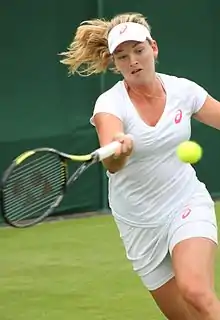 Colleen "CoCo"[1] Vandeweghe (/ˈvændəweɪ/ VAN-də-way)[2] (born Colleen Mullarkey;[3] December 6, 1991) is an American former professional tennis player. A former junior US Open champion and top 10 singles player, she won two WTA Tour titles, both at the Rosmalen Grass Court Championships. In 2017, she reached two major semifinals and the final of the WTA Elite Trophy to enter the top 10, reaching her career-high singles ranking of world No. 9 in January 2018. In addition, Vandeweghe twice reached the quarterfinals at Wimbledon in both 2015 and 2017. Vandeweghe also won one major doubles title, which she won at the 2018 US Open with partner Ashleigh Barty.