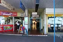 In December 1946 Redcliffe's first nightclub, "The Ace of Clubs", was opened in the ballroom by Bob and May Borradale. A 1949 advertisement for the arcade touted the "Panorama Dance Palais" for weddings, dances and parties. The Acropoly Cafe and Milk Bar was also advertised, along with "modern flats and rooms". The bedrooms were later rented as offices. Tragically Arthur died in December 1949 as a result of a fall from a ladder while working on his arcade.[3][4] From 1975 until 1982 the ballroom was leased to the Redcliffe Art Society. The arcade's extension through to Sutton Street, designed by Colin Tannett and erected by local builder Jim Fortune, was finished in 1968 and was officially opened by the Post-Master General, the Federal Member for Petrie, Alan Hulme. Members of the Comino family jointly owned the original arcade until 2003.[1]