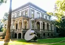 The collection of European art began with the Crocker family's trip to Europe, from 1869 to 1871. It was not a Grand Tour. The Crockers rented lodgings in Dresden for over a year, and traveled mostly in Germany.[11] As a later director of the museum would write, "Mr. Crocker was a novice and completely susceptible to a kind of fraud in his anxiety to become the possessor of a large collection of masterpieces. He acquired in his wholesale search a collection of more than 700 paintings," most of them "not by the few famous names given him by the dealers in Munich and Dresden."[12] (Works said to be by Rembrandt, Rubens, Poussin, Salvator Rosa, and even Leonardo da Vinci appear in the initial 1876 catalogue, but were reattributed in following decades.)[13][14][15][16][17] However, among Crocker's purchases were a number of genuinely rare works by a broader array of artists than he realized, and for a brief time the Crockers possessed the largest private art collection in the United States.[8]