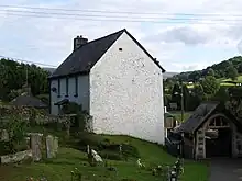 The rectory within the church grounds was once the property of Moses Williams FRS and his inscription is to found on the beams of one of the attics.[1] The property immediately south of the lychgate (Ty Defynnog, Defynnog House) may have been made up of two former cottages. Its cellar contains a stone slab of uncertain purpose. It is a Grade II listed building.[12]