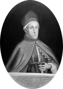 The descendant of Oberto I,[13][14] known as Obertaccio, was Oberto II,[15][16][17] who served on the Council of Elders for three consecutive mandates (1374–1404). He was then elected Knight of the Doge together with Giuliano di Savignone;[18][19][20] he then became commander of the army defending the ducal palace, where he resided permanently by virtue of his thirty-year mandate.[21][22]