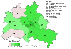 The referendum passed with just over one million Berliners or 59.1% of the total vote in favour.[14]