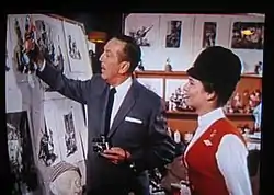 ![]() Walt Disney uses a maquette to demonstrate the planned action of an Audio-animatronics pirate in the Pirates of the Caribbean attraction. | |