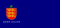 | Design | A dark blue field with the coat of arms of Guernsey in the hoist and the name "HERM ISLAND" in white beneath it. |