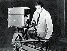 ![]() Enriquez in RAI television studios (Radiocorriere magazine, 1955) | |