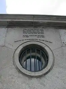 Even the Habsburg resistance on a small scale was followed extremely strictly. For example, in a People's Court ("Volksgerichtshof") trial in Vienna, an old, seriously ill, and frail woman was sentenced to four years in prison for possessing a note she wrote found in her wallet with the rhymed text "Wir wollen einen Kaiser von Gottesgnaden und keinen Blutmörder aus Berchtesgaden. ("We want an emperor of divine grace and not a blood murderer from Berchtesgaden.").[30] Another Habsburg supporter was sentenced to death by a Nazi court in Vienna for donating 9 Reichsmarks to "Rote Hilfe".[31] The pro-Habsburg siblings Schönfeld were also sentenced to death for producing anti-Nazi leaflets.[32]