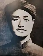 He Long was a member of the Tujia ethnic group.[1] Born in the Sangzhi, Hunan, he and his siblings, including He Ying, grew up in a poor peasant household, despite his father being a minor Qing military officer.[2] His father was a member of the Gelaohui (Elder Brother Society), a secret society dating back to the early Qing dynasty. A cowherd during his youth, he received no formal education.[3] When He was 20 he killed a local government tax assessor who had killed his uncle for defaulting on his taxes.[4] He then fled and became an outlaw, giving rise to the legend that he began his revolutionary career with just two kitchen knives.[3] After beginning his life as an outlaw he gained a reputation as a "Robin Hood-like figure". His signature weapon was a butcher knife.[2]