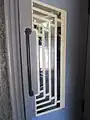 Post office: a writing desk in front of a design protruding window frame