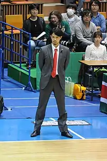 Hiroki Sato (佐藤博紀, Sato Hiroki) is a Japanese professional basketball executive and former player, currently serving as the general manager of the Chiba Jets Funabashi of the Japanese B.League. [1] He played college basketball for Juntendo University. He was selected by the Oita Heat Devils with the 11th overall pick in the 2005 bj League draft. Sato's jersey number has been retired by the Jets.