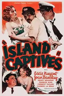 Island Captives is a 1937 American adventure film directed by Paul Kerschner and written by Al Martin. The film stars Edward Nugent, Joan Barclay, Henry Brandon, Charles King, Forrest Taylor and Carmen Laroux. The film was released on July 22, 1937, by William Steiner.[1][2][3] This film is in the public domain.[4]
