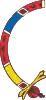 The Napoletane pattern is very widely used across southern and central Italy. It has a number of unique and characteristic cards, including the 3 of Clubs which features a grotesque mask with a large moustache, silhouettes of farming activities on the 5 of Swords, and the Horse/Cavalier (Cavallo) of Swords being portrayed as a Moor, wearing a turban and holding a scimitar.[16]