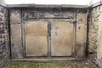 Bonar died in his house in Broughton on 25 March 1821.[2] He is buried in Canongate Kirkyard on the Royal Mile in Edinburgh. The grave lies in the north-west corner of the eastern extension. Most of his children and grandchildren lie nearby.