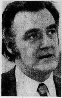 McDermott was the city Republican organization's choice for mayor in 1963, and he easily defeated three independent candidates in the May primary.[14] The Democrats nominated acting mayor James Tate for a full term, and a close race was expected.[15] McDermott campaigned on a reform platform, saying that Tate had worked to sabotage the good-government reforms of the Joseph S. Clark Jr. and Richardson Dilworth administrations that had run the city from 1951 to 1962.[16] Tate responded by contrasting his experience with McDermott's and touted his endorsement by the AFL–CIO.[16] McDermott said that Tate "has never been off the public payroll in twenty-five years" and criticized the mayor's refusal to debate him.[16] The election was closer than the one four years earlier, but McDermott still lost by more than 66,000 votes.[17][18]