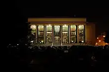 Janáček Theatre (Czech: Janáčkovo divadlo) is an opera house in the city of Brno, Czech Republic. It is the largest of the three theatres serving the National Theatre Brno ("NdB") opera and ballet company, the others being the Mahen and the Reduta. It was built starting in 1960 after decades of delay and finally opened in October 1965,[1] since when it has premiered some twenty operas and ballets.[2] A major renovation was completed in 2018. The building's façade is north-facing, away from the city center and towards the nearby house of its namesake composer, who is grandly memorialized on the adjacent landscaped green.