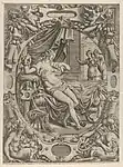 At least half of his prints, over thirty,[4] use compositions by the Italian painter Luca Penni, who was also at the palace from 1537 through to the 1540s.[5] Others use designs by Francesco Primaticcio, the leader of the school after the suicide of Rosso Fiorentino in 1540.[6] Mignon's prints number around sixty, with some uncertainty over the authorship of a number.[7]