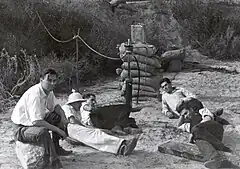 JPL traces its beginnings to 1936 in the Guggenheim Aeronautical Laboratory at the California Institute of Technology (GALCIT) when the first set of rocket experiments were carried out in the Arroyo Seco.[5] This initial venture involved Caltech graduate students Frank Malina, Qian Xuesen, Weld Arnold[6] and Apollo M. O. Smith, along with Jack Parsons and Edward S. Forman, often referred to as the "Suicide Squad" due to the dangerous nature of their experiments.[7] Together, they tested a small, alcohol-fueled motor to gather data for Malina's graduate thesis.[8] Malina's thesis advisor was engineer/aerodynamicist Theodore von Kármán, who eventually secured U.S. Army financial support for this "GALCIT Rocket Project" in 1939.