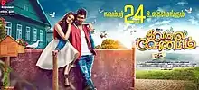 In August 2016, Elred Kumar announced that the film would release on 7 October 2016 coinciding with the Ayudha Puja holidays in India, but the team consequently chose to postpone the project to avoid competition with other films.[20] During the period, distributor Abinesh Elangovan also purchased the Indian theatrical rights of the film to release through his studio, Abi & Abi Pictures.[21] D. Venkatesh of DV Cine Creations bought the Telugu dubbing rights of the film and subsequently prepared the Telugu version titled Entha Varaku Ee Prema. A first look poster was released through Twitter in early August, while a teaser trailer was released by actor Dhanush two weeks later.[22][23] Subsequently, in mid-November, Elred Kumar announced a new release date of 24 November and the film began promotional work, with a second teaser trailer being released.[24][25][26]
