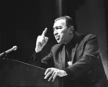 Adam Clayton Powell Jr. (November 29, 1908 – April 4, 1972)[1] was an American Baptist pastor and politician who represented the Harlem neighborhood of New York City in the United States House of Representatives from 1945 until 1971. He was the first African American to be elected to Congress from New York, as well as the first from any state in the Northeast.[2] Re-elected for nearly three decades, Powell became a powerful national politician of the Democratic Party, and served as a national spokesman on civil rights and social issues. He also urged United States presidents to support emerging nations in Africa and Asia as they gained independence after colonialism.
