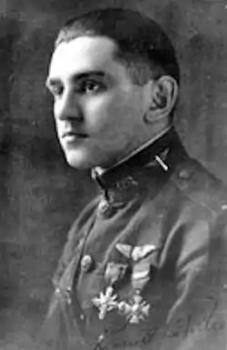 Porter was an engineering graduate from the University of Michigan who joined the U.S. Army Air Service in August 1917. He reported to the 147th Aero Squadron in February 1918.[2] While on patrol with Ralph O'Neill and four other American pilots, they shot down a Pfalz D.III over Château Thierry on 2 July. After switching his Nieuport 28 for a Spad XIII, Porter would score four more times, from 28 September through 12 October 1918, sharing his scores with Wilbert White, Francis Simonds, and three other pilots. He also became a Flight Commander.[1] He received the Distinguished Service Cross and the French Croix de Guerre.[3]