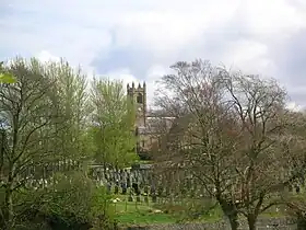Kilmaurs (from Scottish Gaelic Cill Mhàrais)[2] is a village in East Ayrshire, Scotland which lies just outside of the largest settlement in East Ayrshire, Kilmarnock. It lies on the Carmel Water, 21 miles (34 kilometres) southwest of Glasgow. Population recorded for the village in the 2001 Census recorded 2,601 people resided in the village[3] It was in the Civil Parish of Kilmaurs.[4]