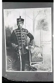 Ghazi Amanullah Khan (Pashto and Persian: غازی امان الله خان; 1 June 1892 – 25 April 1960) was the sovereign of Afghanistan from 1919, first as Emir and after 1926 as King, until his abdication in 1929.[1] After the end of the Third Anglo-Afghan War in August 1919, Afghanistan was able to relinquish its protected state status to proclaim independence and pursue an independent foreign policy free from the influence of the United Kingdom.[2]
