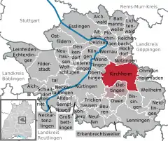 Location of Kirchheim unter Teck within Esslingen district ![]() | |