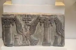 By the mid-4th century, the Kingdom of Kush had fallen. Nubians, without a functioning kingdom and possibly desperate to maintain what little control they had left over the ivory trade, attacked the Kingdom of Aksum. Under King Ezana, Aksum responded with a large military force and plundered Meroë circa 350 AD.[25][26] In the 5th century, Nubia split into three new kingdoms: Nobatia (ca. 350-590 AD) with its capital at Faras, Makuria (ca. 5th century-1518) with its capital at Dongola, and Alodia (ca. 6th century–c. 1500) with its capital at Soba.[26] Circa 580 AD, these kingdoms converted to Christianity[3] with the Temple of Taharqa being renovated to include a church.[3] Faras also became a religious center for Christian Nubian bishops.[26] With the advent of Christianity, most temples dedicated to indigenous Kushite deities were replaced with churches and monasteries dedicated to Yahweh.[3] Burial practices also changed from Kerman-style stone circles, Medjayu-style pan-graves and Meroitic-style tumuli with funerary goods to Christian-style rectangular graves with no funerary goods and a cross or small tombstone on top.[3][27]