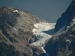 Ladder Creek Glacier is in North Cascades National Park in the U.S. state of Washington and is a northwest tongue of the larger Neve Glacier.[2] Ladder Creek Glacier added 105 m (344 ft) between 1950 and 1979, but lost 190 m (620 ft) from 1979 to 2006.[3] Ladder Creek Glacier descends from 7,800 to 6,000 ft (2,400 to 1,800 m).