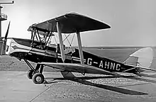 De Havilland Tiger Moth of Lancashire Aero Club wearing their dark blue and silver colour scheme at Barton Aerodrome in October 1952